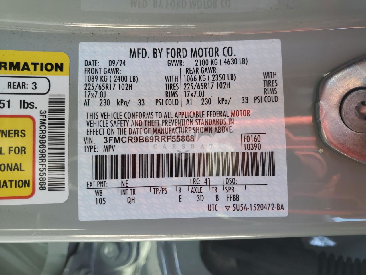 • VIN: 3FMCR9B69RRF55868