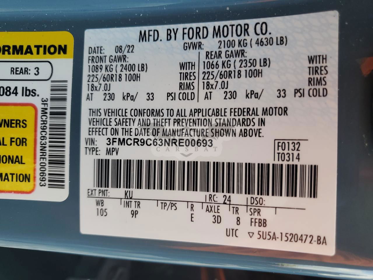 • VIN: 3FMCR9C63NRE00693