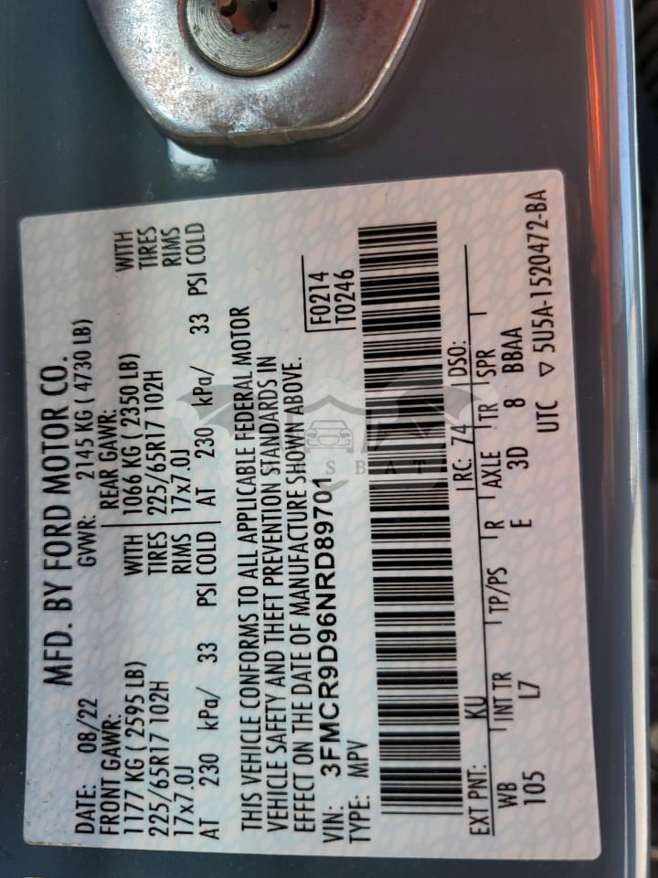 • VIN: 3FMCR9D96NRD89701