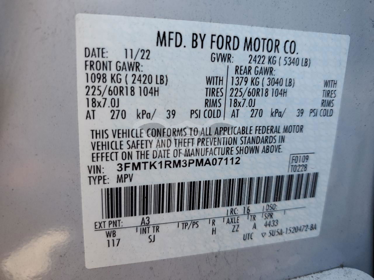 • VIN: 3FMTK1RM3PMA07112