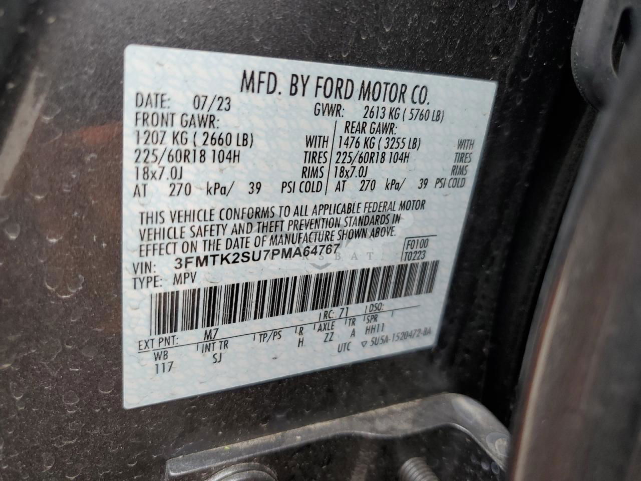 • VIN: 3FMTK2SU7PMA64767
