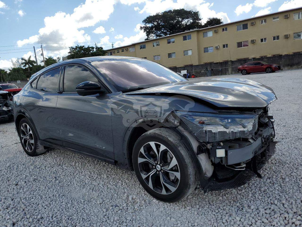 Szary Ford Mustang Mach-E PREMIUM 2023 roku | Elektryczny