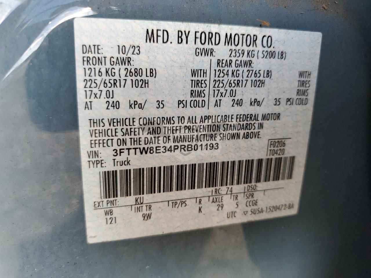 • VIN: 3FTTW8E34PRB01193