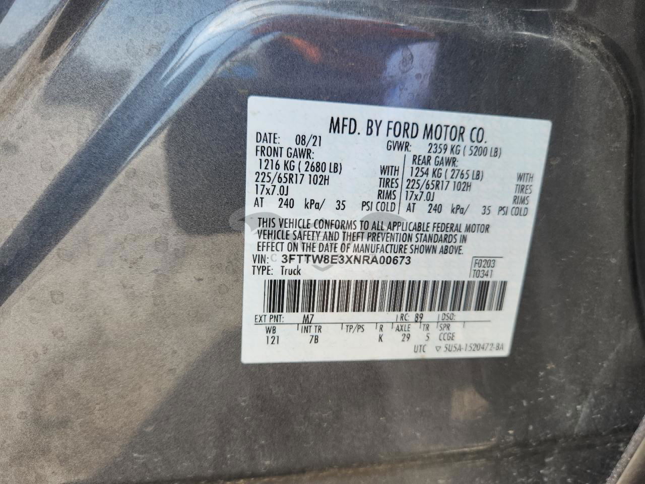 • VIN: 3FTTW8E3XNRA00673