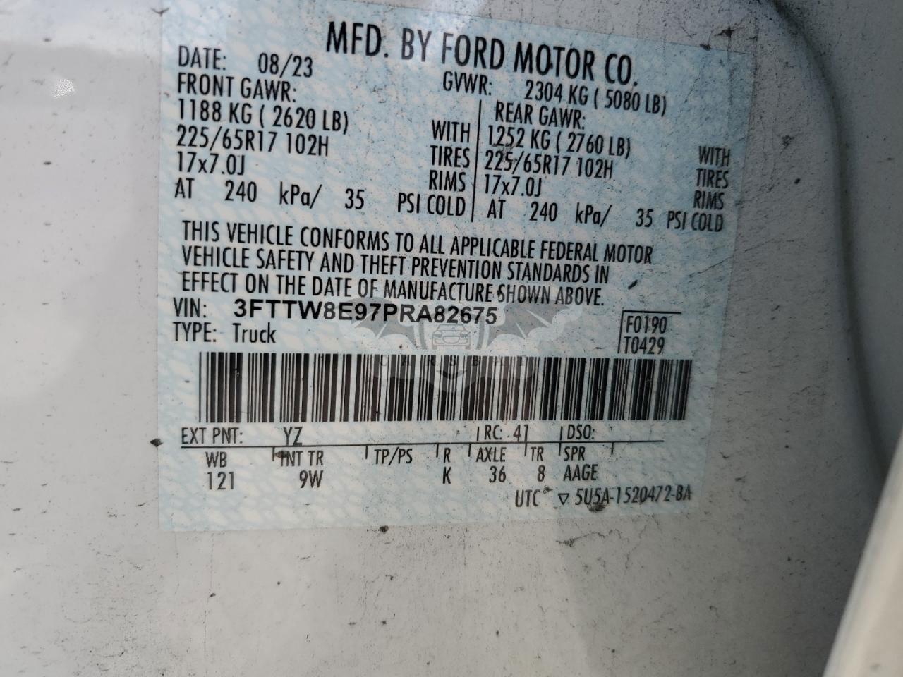 • VIN: 3FTTW8E97PRA82675