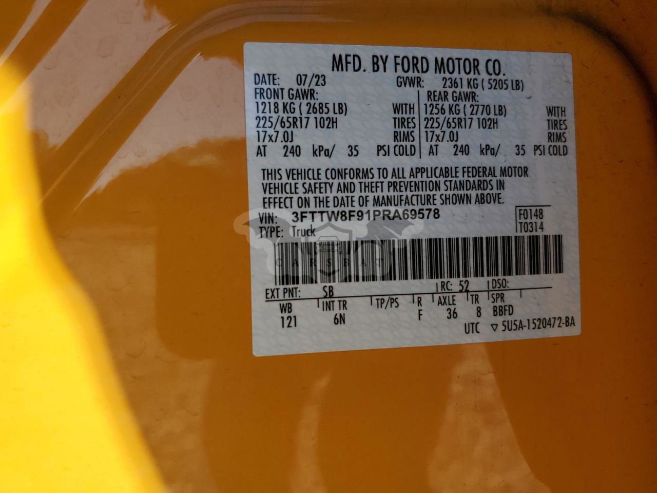 • VIN: 3FTTW8F91PRA69578