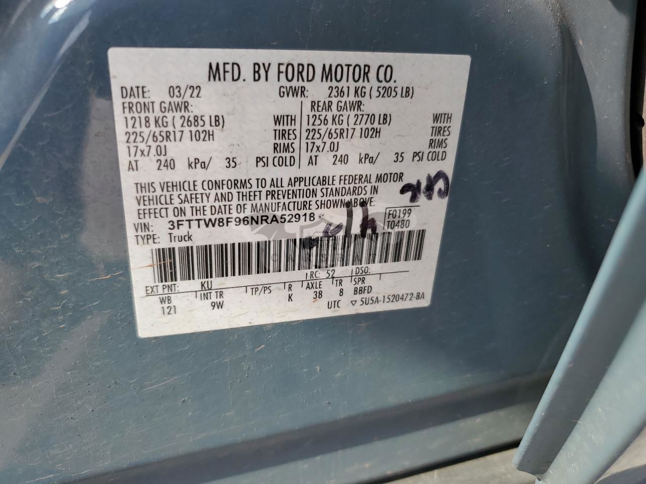 • VIN: 3FTTW8F96NRA52918