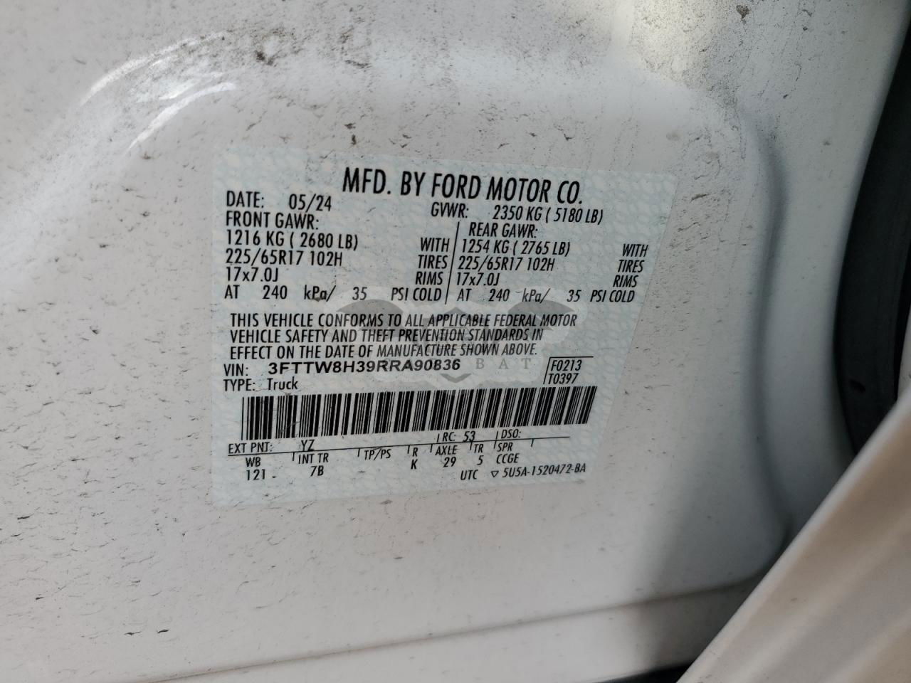 • VIN: 3FTTW8H39RRA90836