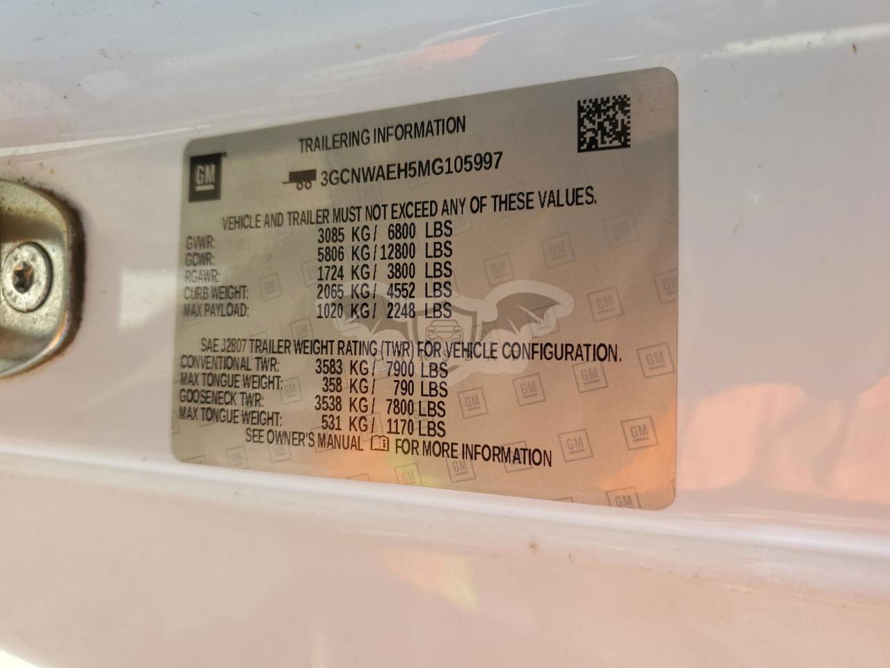 • VIN: 3GCNWAEH5MG105997