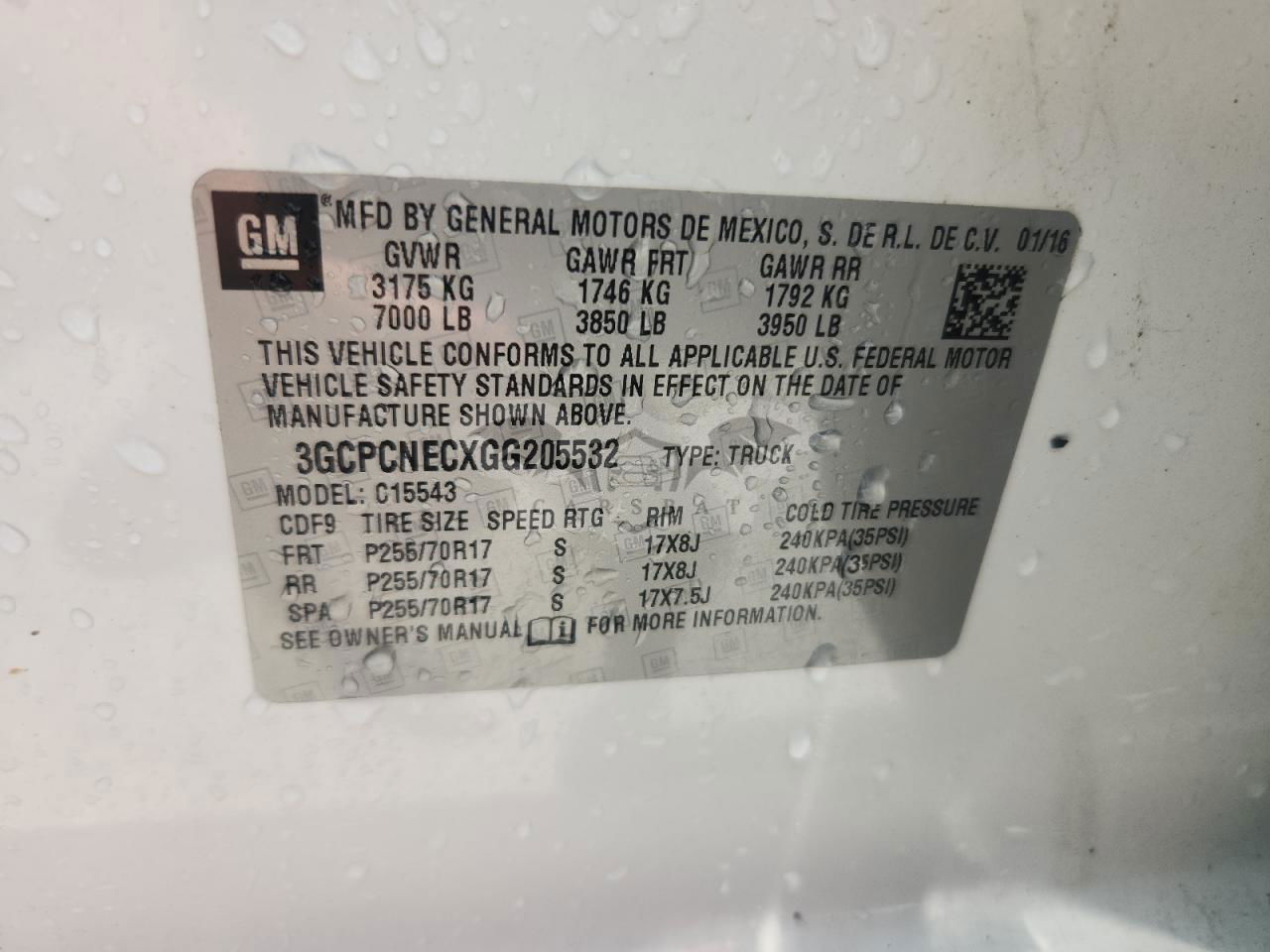 • VIN: 3GCPCNECXGG205532