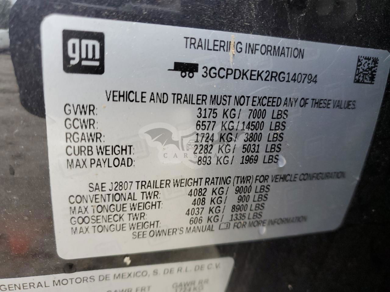 • VIN: 3GCPDKEK2RG140794