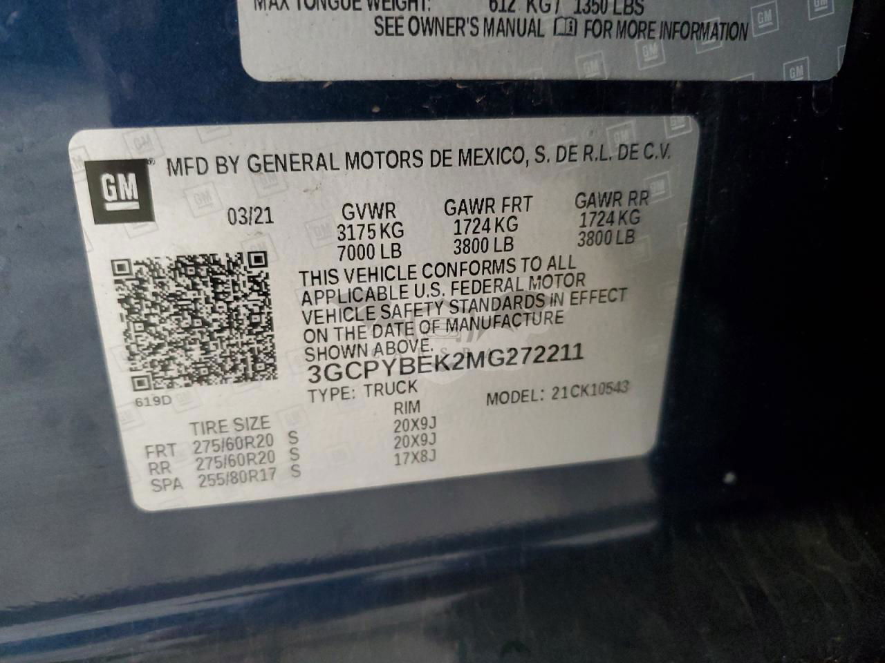 • VIN: 3GCPYBEK2MG272211