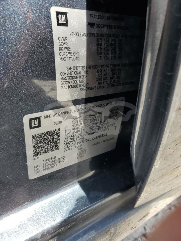 • VIN: 3GCPYFED4LG420334
