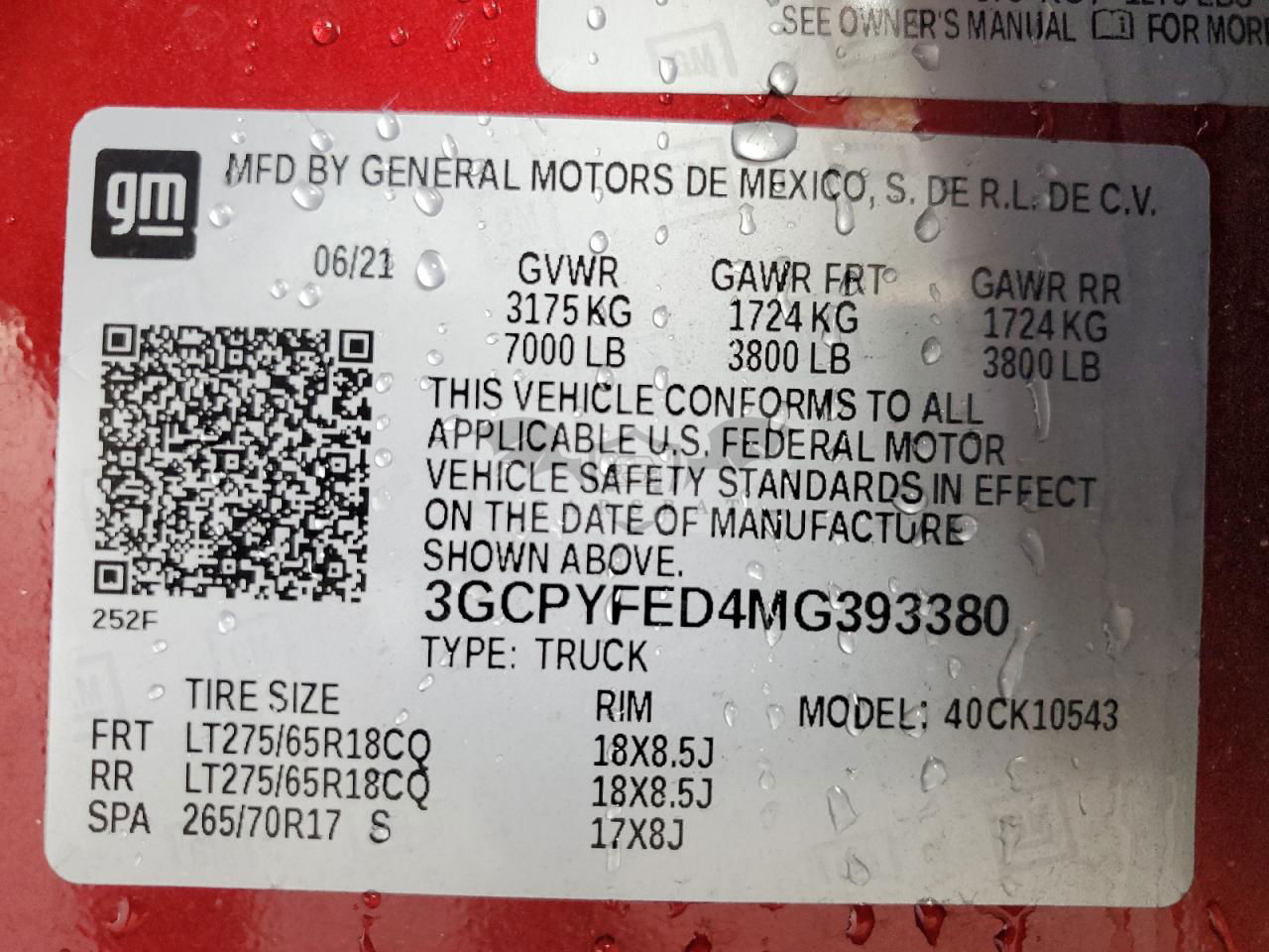 • VIN: 3GCPYFED4MG393380