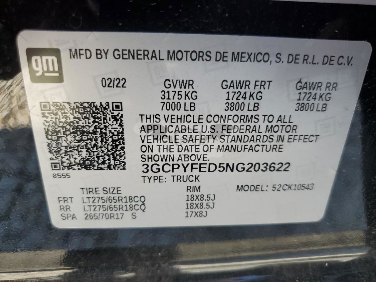 • VIN: 3GCPYFED5NG203622