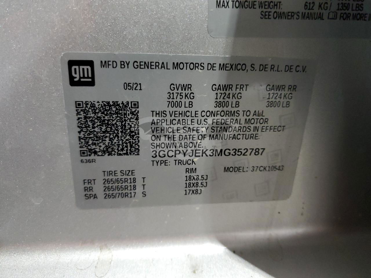 • VIN: 3GCPYJEK3MG352787