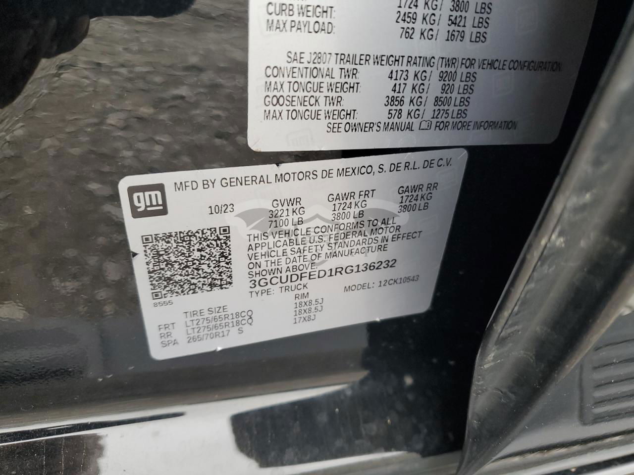 • VIN: 3GCUDFED1RG136232
