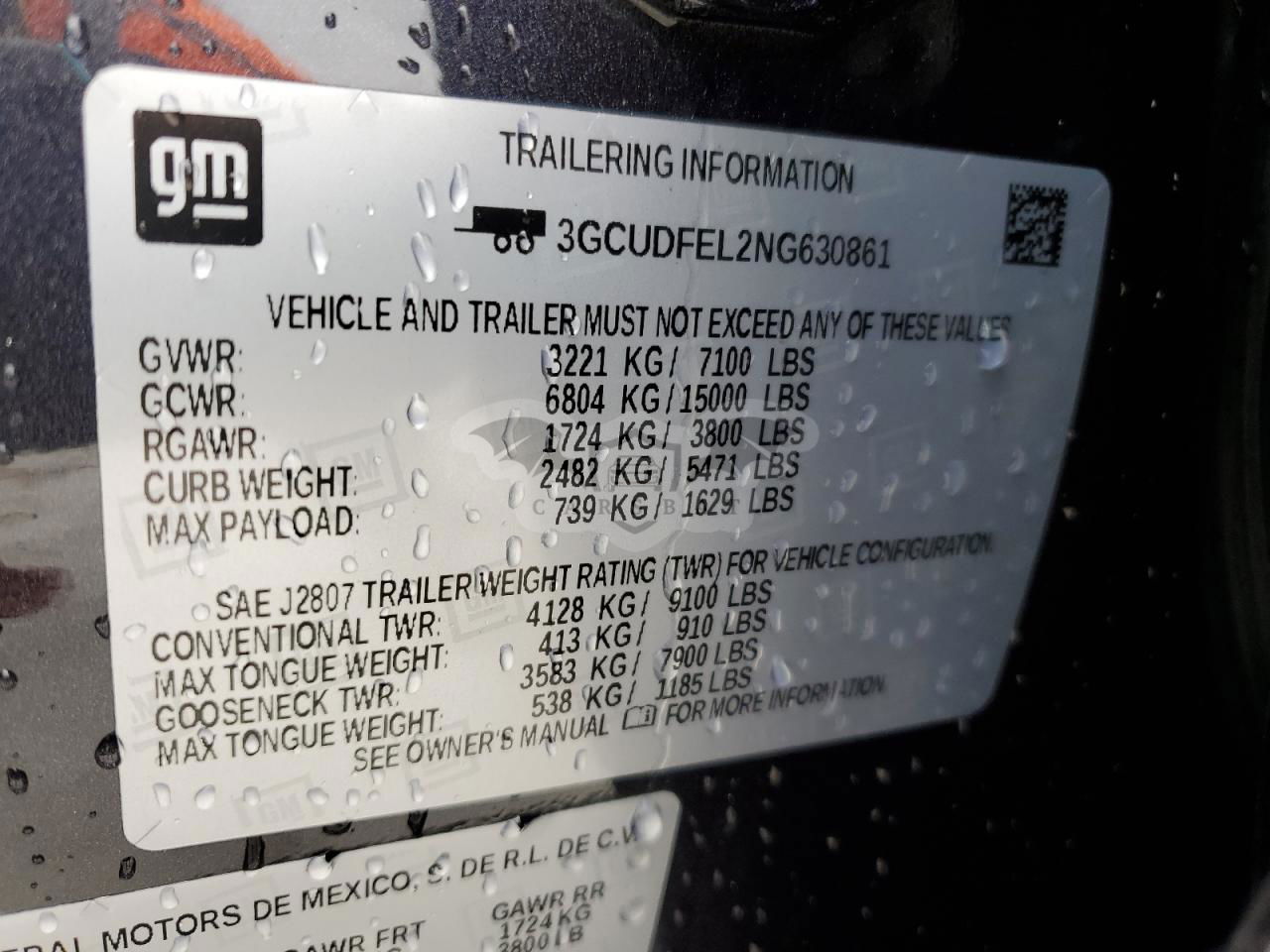 • VIN: 3GCUDFEL2NG630861