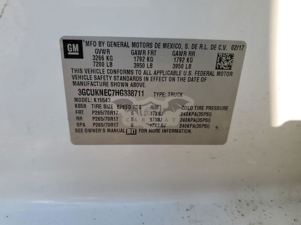 • VIN: 3GCUKNEC7HG338711