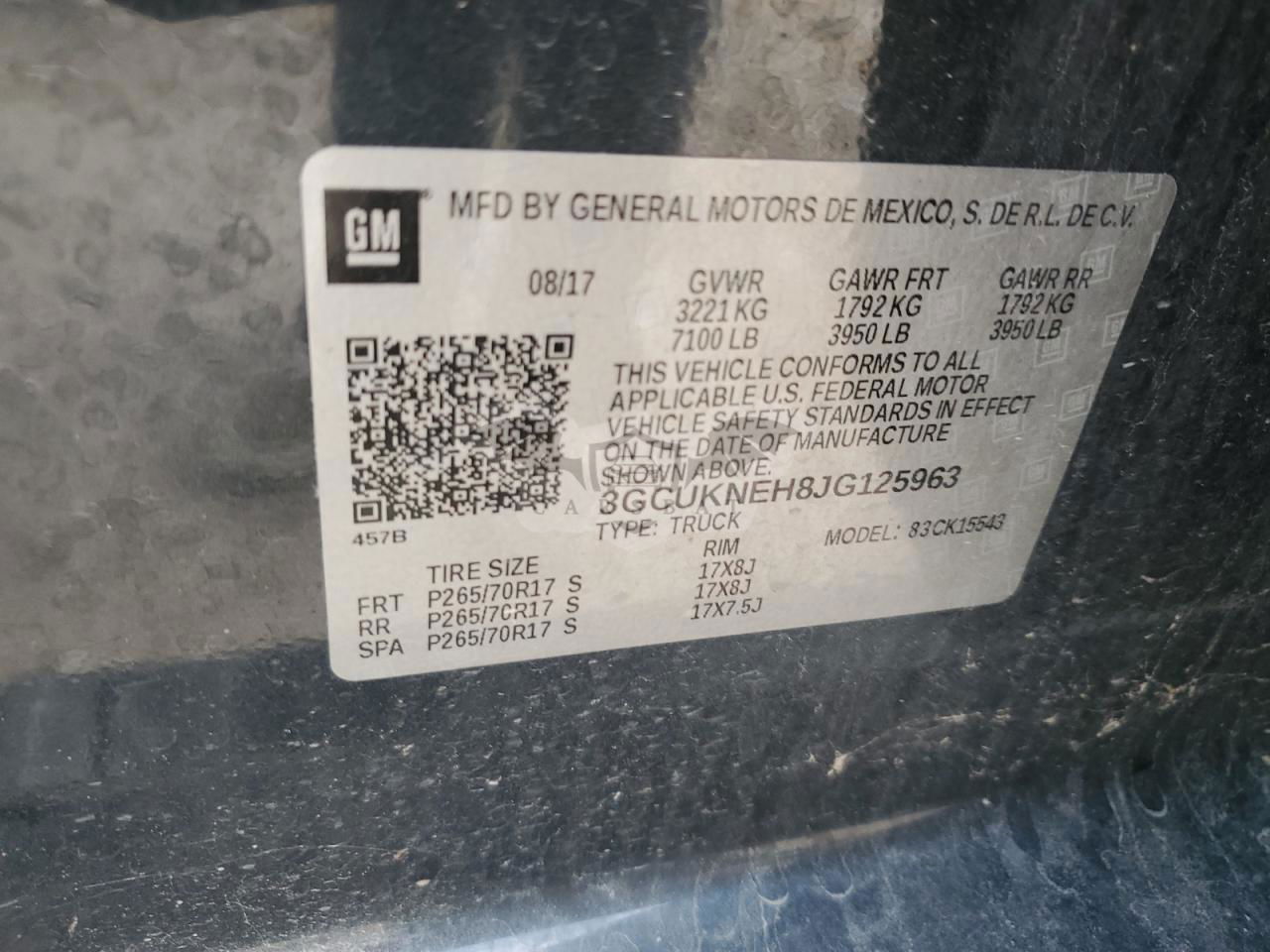 • VIN: 3GCUKNEH8JG125963