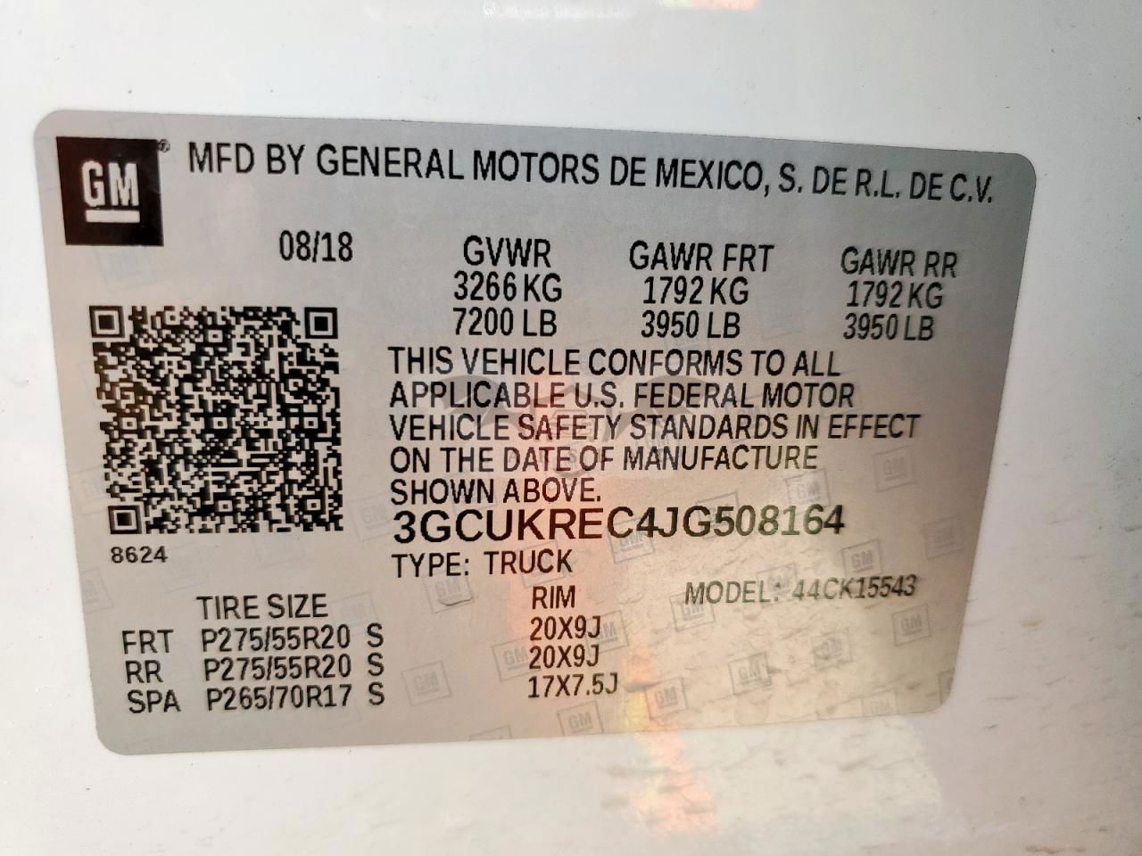 • VIN: 3GCUKREC4JG508164