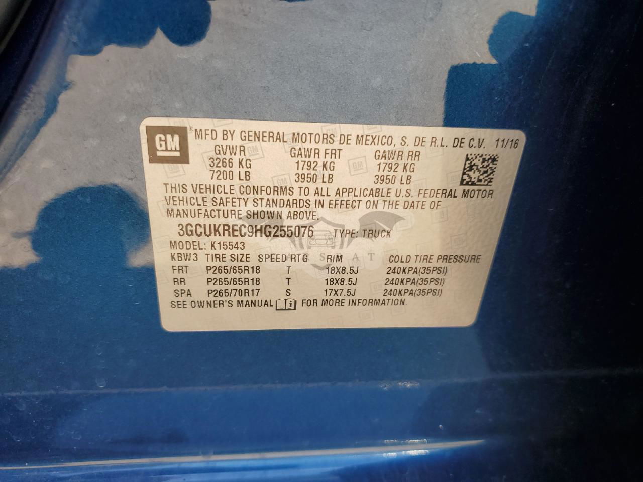 • VIN: 3GCUKREC9HG255076
