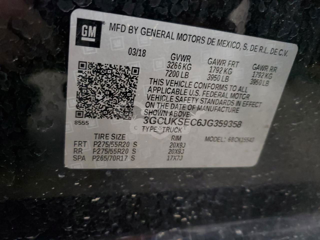 • VIN: 3GCUKSEC6JG359358