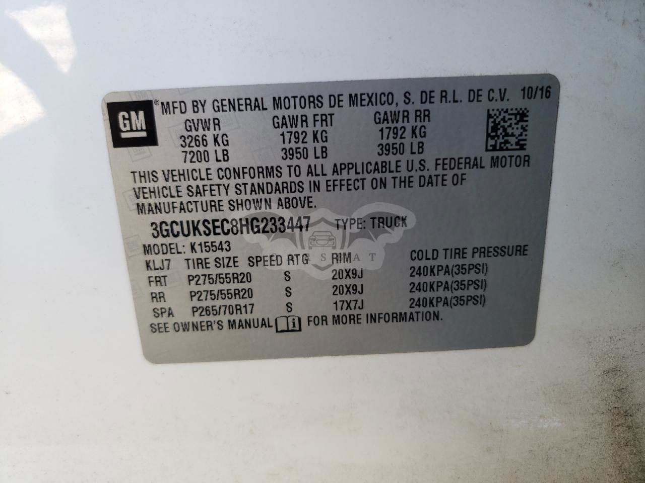 • VIN: 3GCUKSEC8HG233447