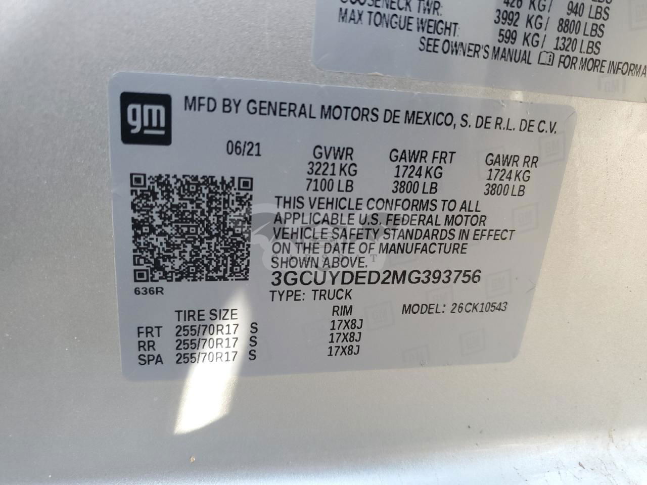 • VIN: 3GCUYDED2MG393756