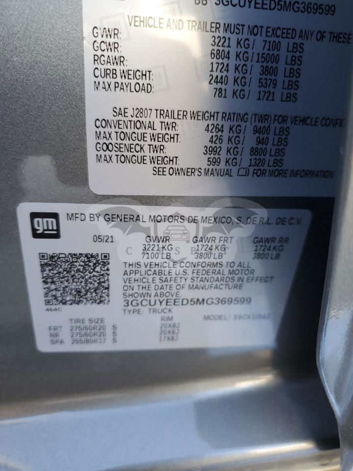 • VIN: 3GCUYEED5MG369599