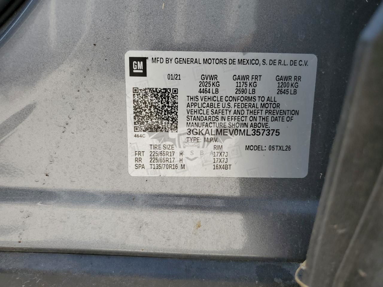 • VIN: 3GKALMEV0ML357375