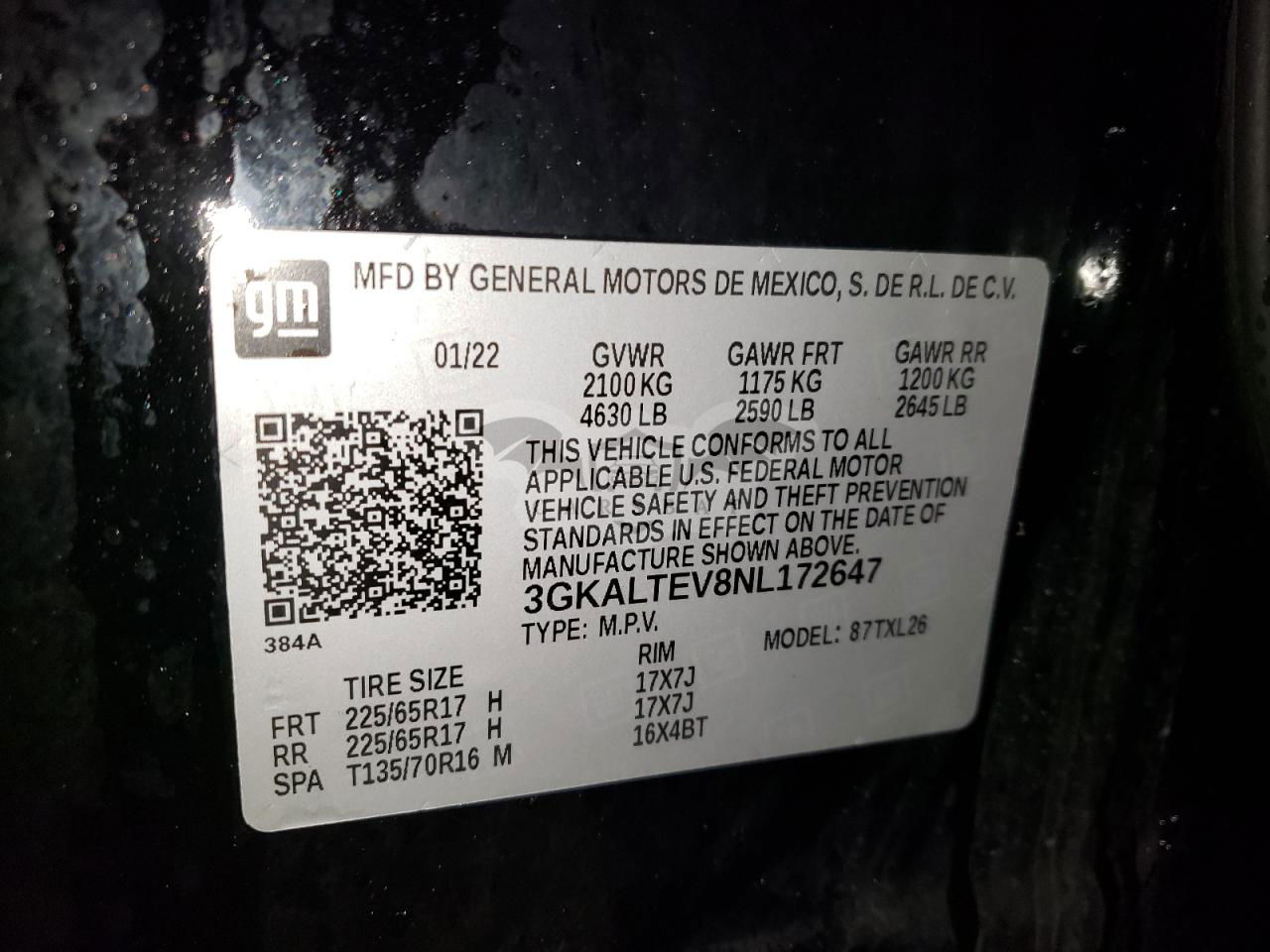 • VIN: 3GKALTEV8NL172647