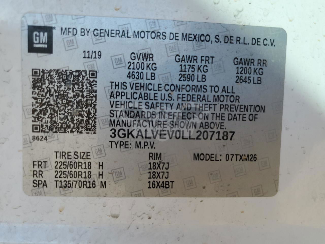 • VIN: 3GKALVEV0LL207187