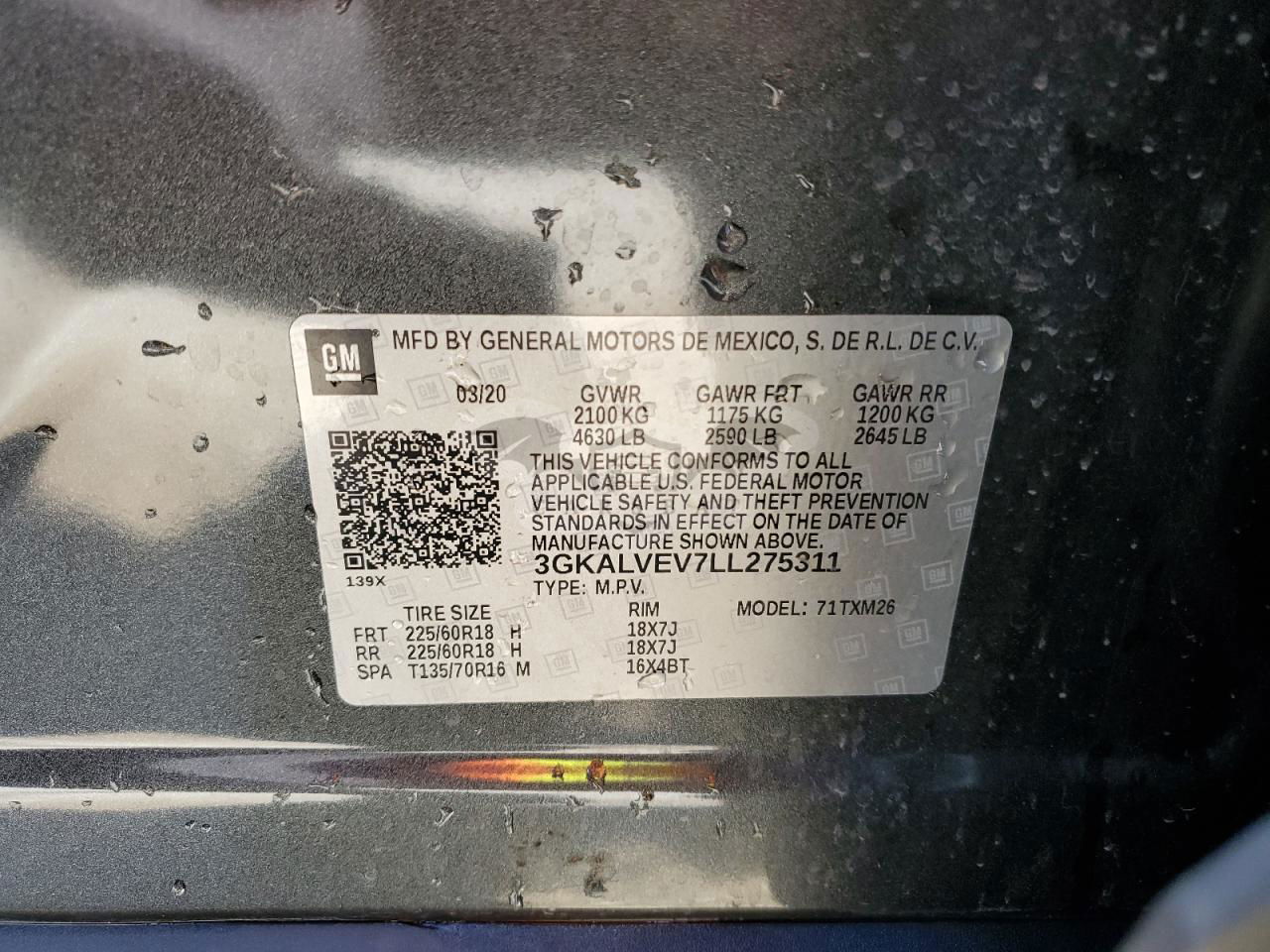 • VIN: 3GKALVEV7LL275311