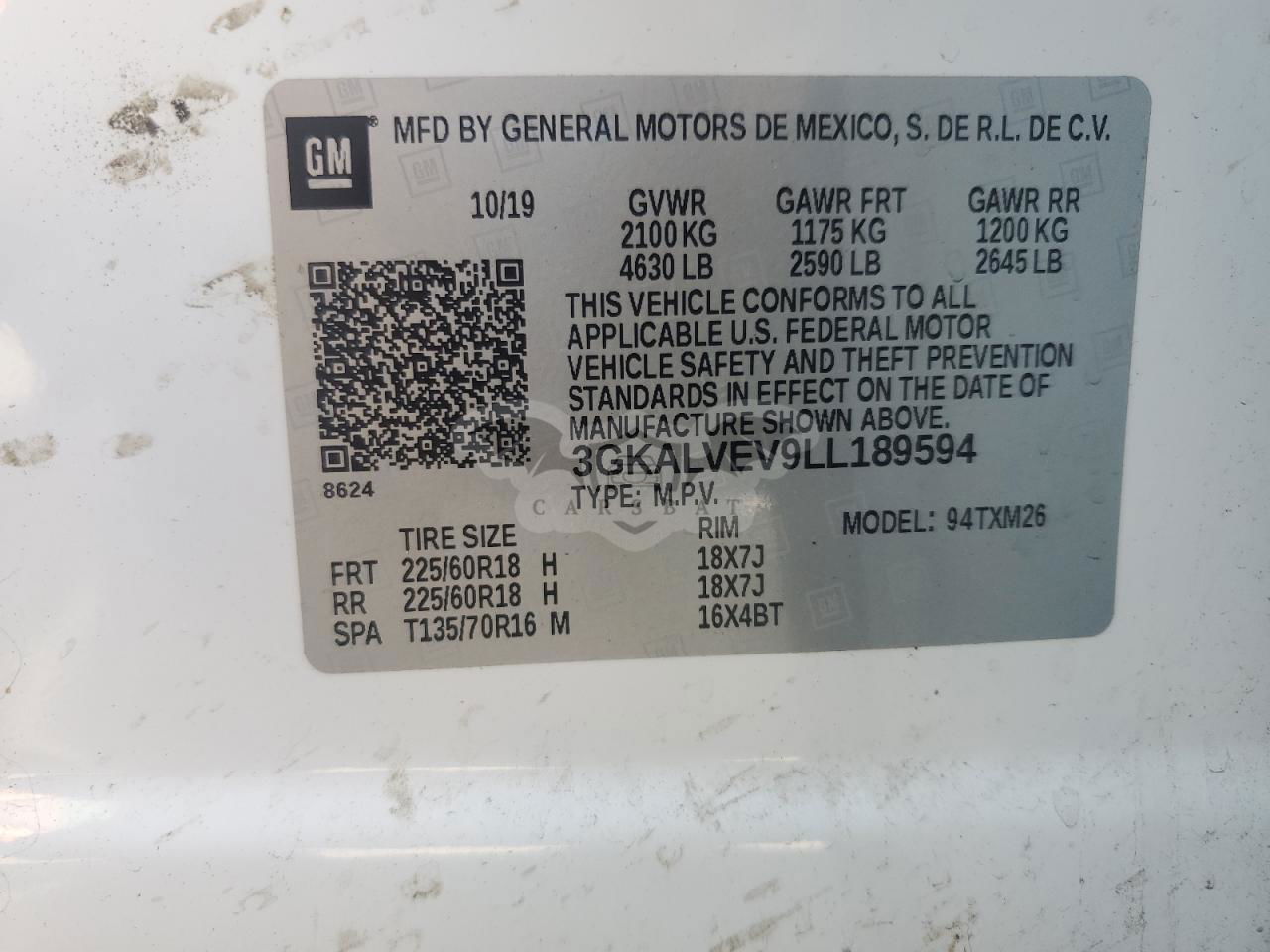 • VIN: 3GKALVEV9LL189594
