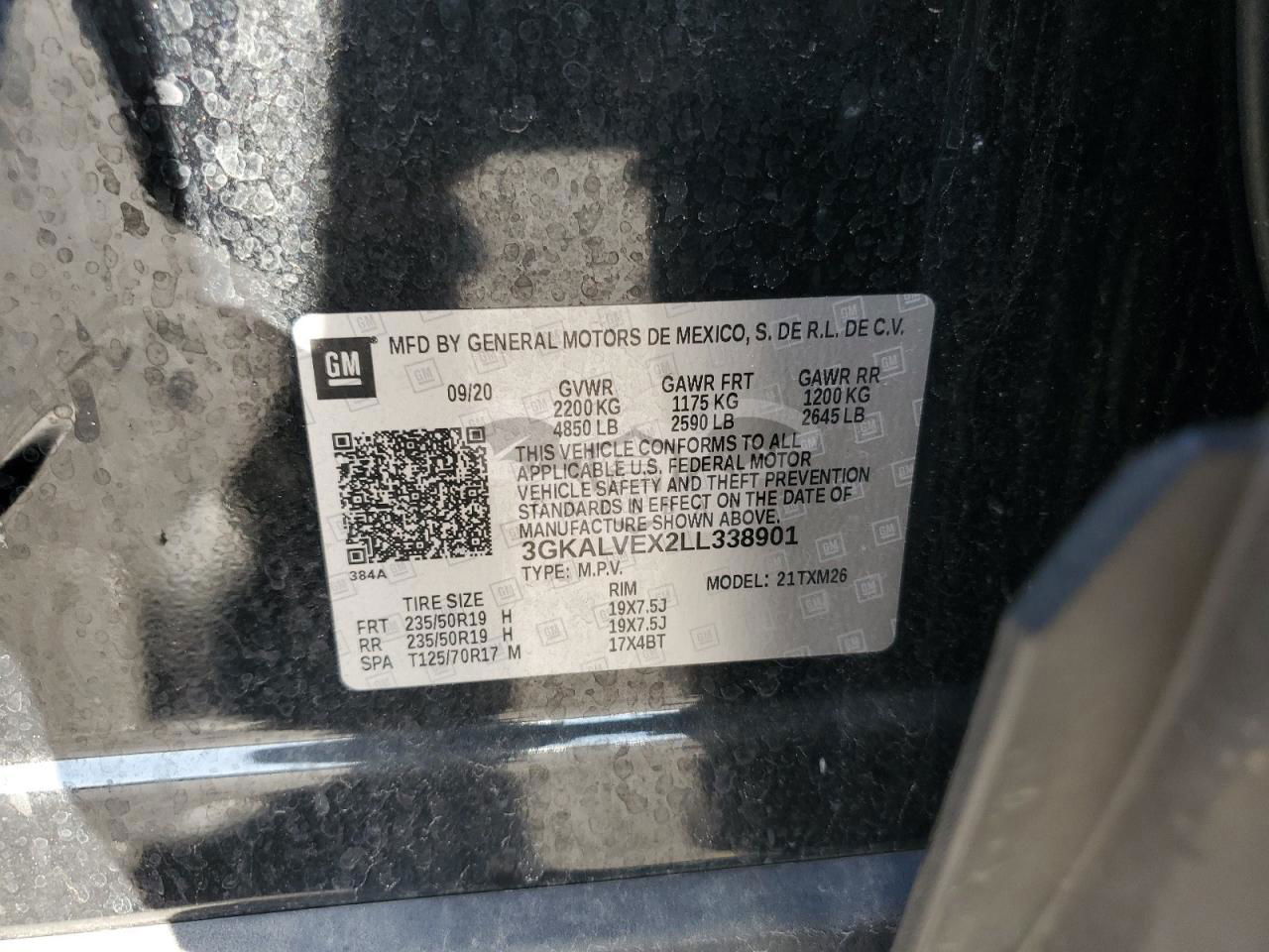 • VIN: 3GKALVEX2LL338901