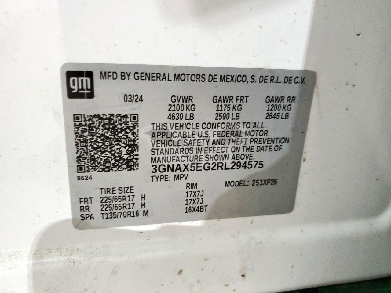 • VIN: 3GNAX5EG2RL294575