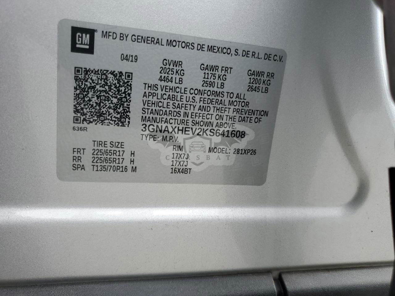 • VIN: 3GNAXHEV2KS641608