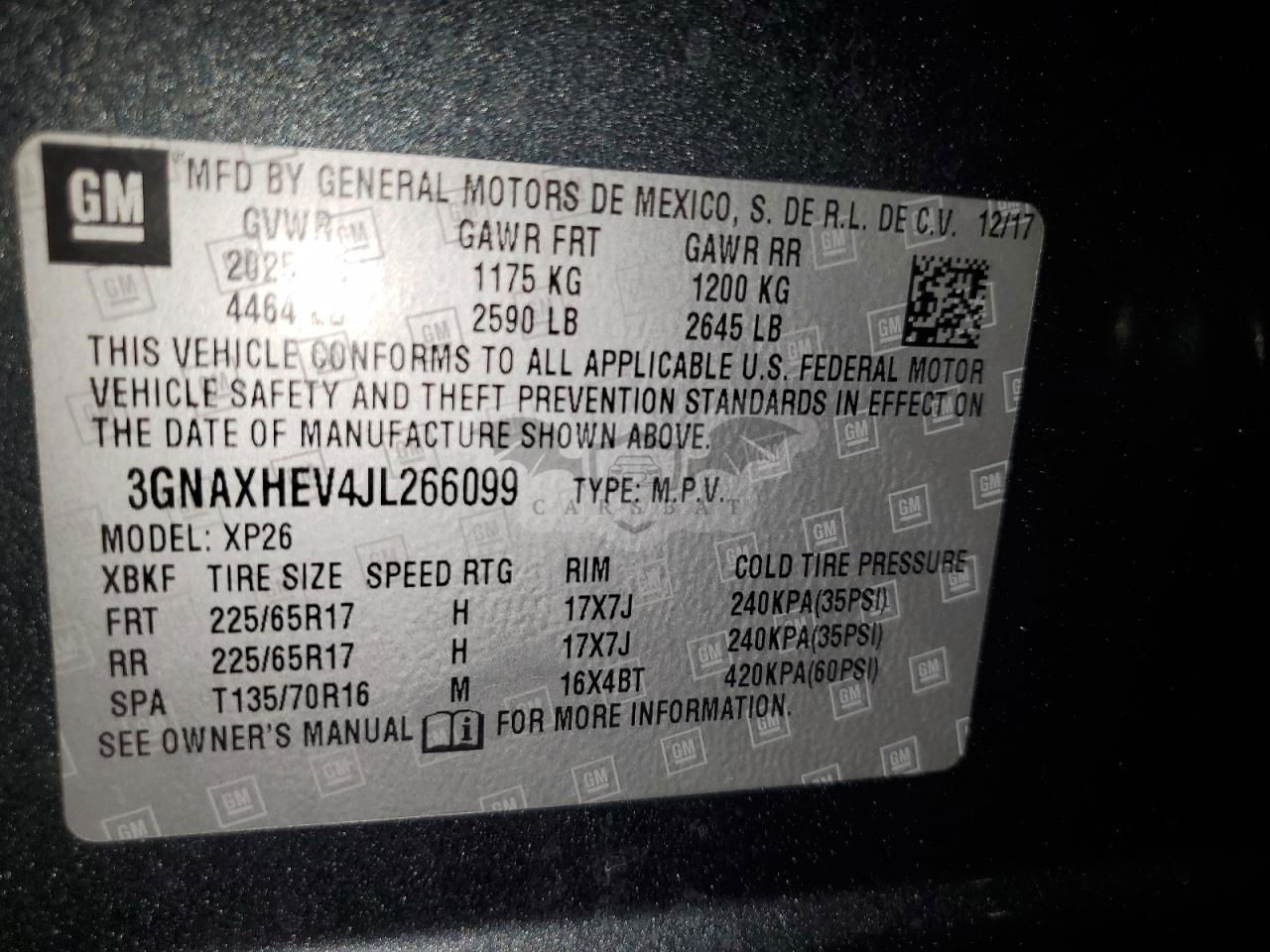 • VIN: 3GNAXHEV4JL266099