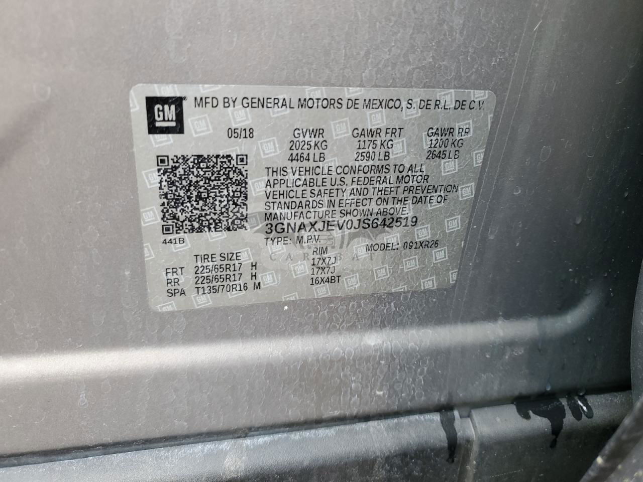 • VIN: 3GNAXJEV0JS642519