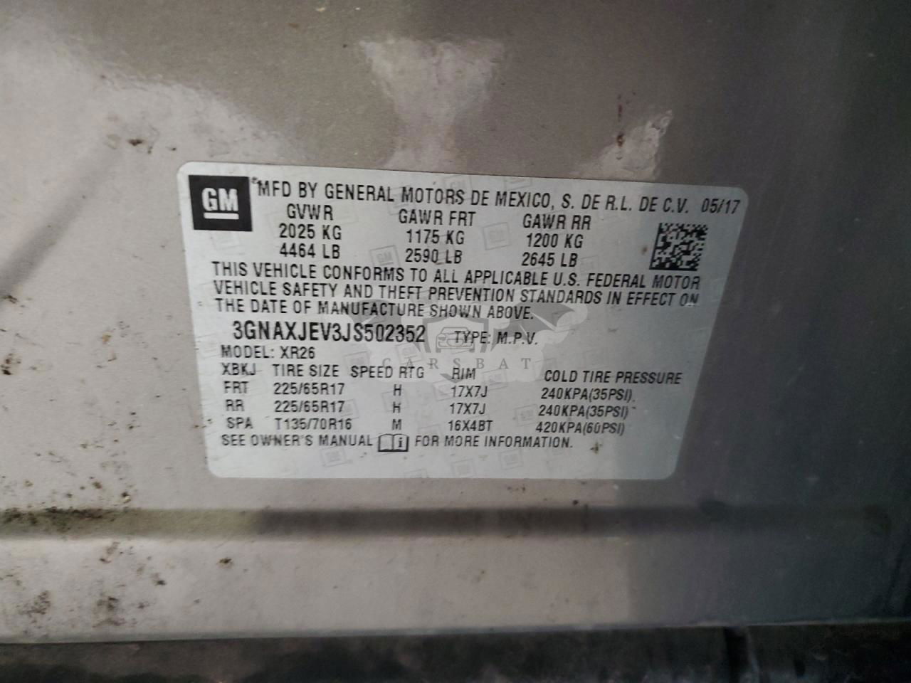 • VIN: 3GNAXJEV3JS502352