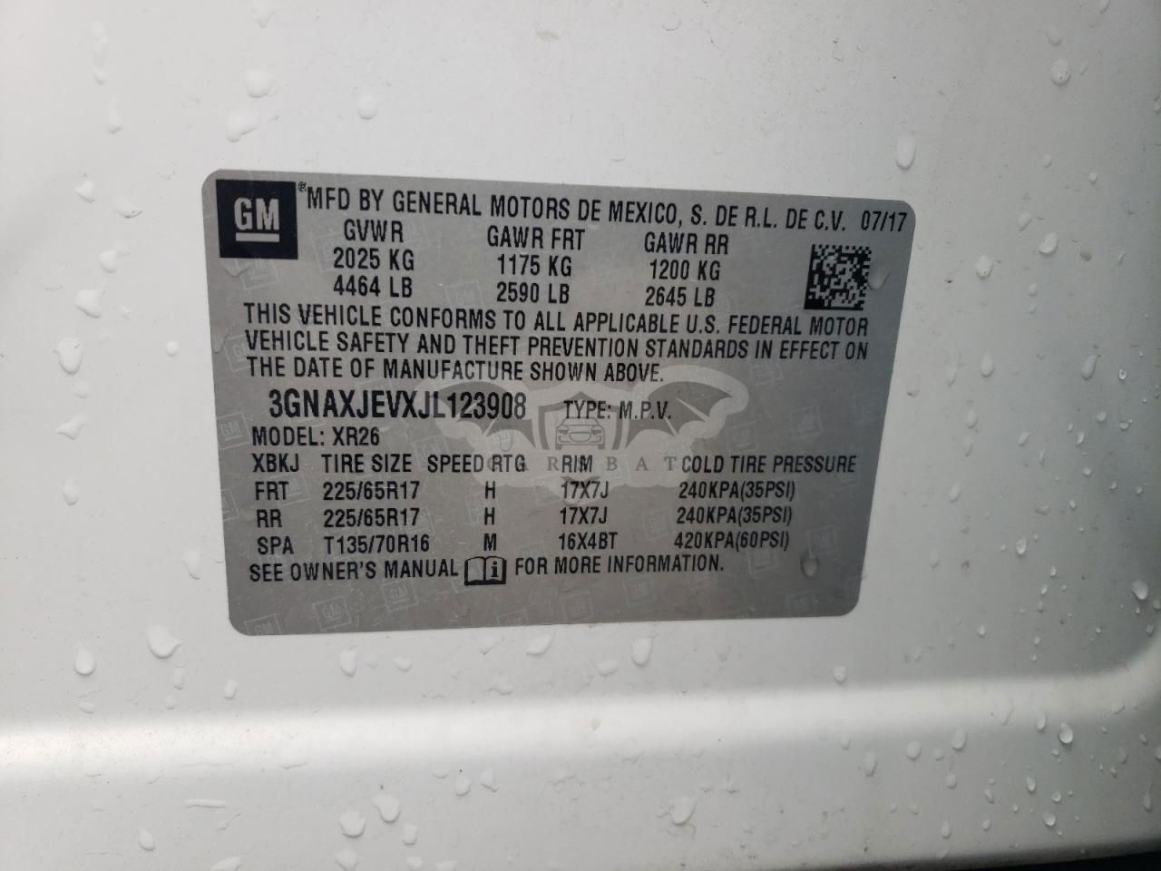 • VIN: 3GNAXJEVXJL123908