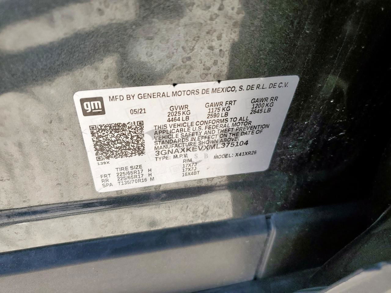 • VIN: 3GNAXKEVXML375104