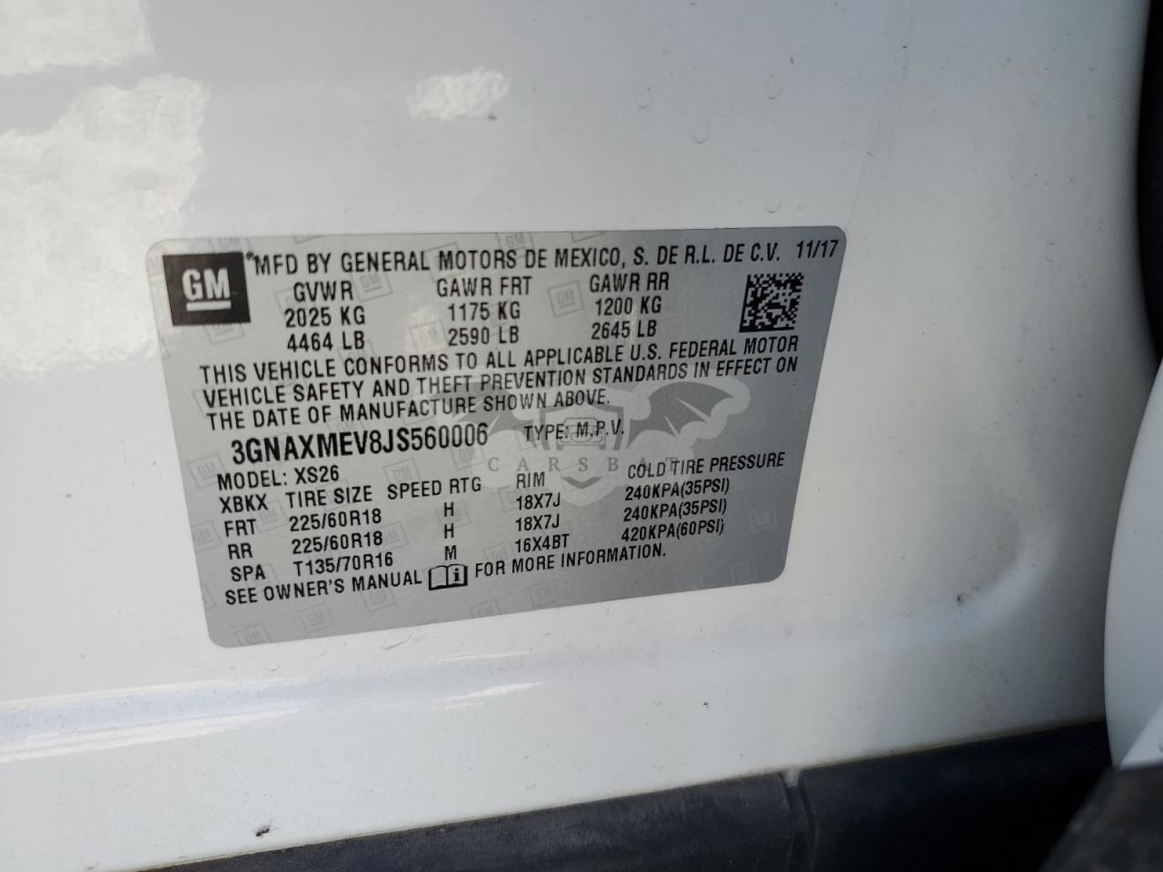 • VIN: 3GNAXMEV8JS560006