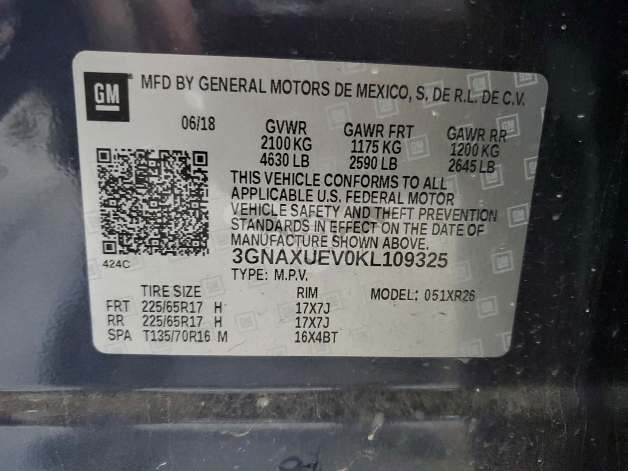 • VIN: 3GNAXUEV0KL109325