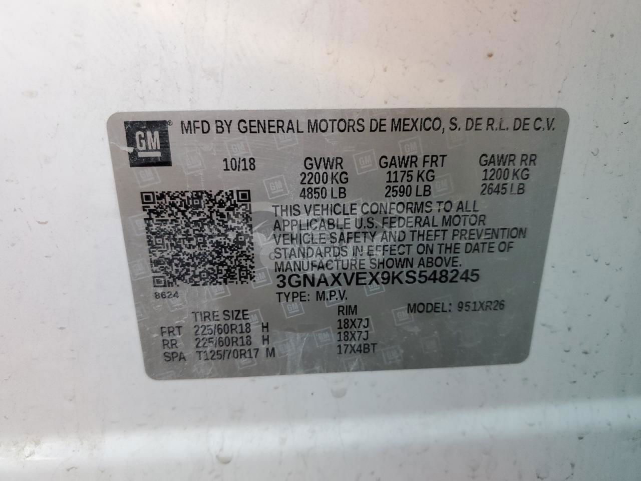 • VIN: 3GNAXVEX9KS548245