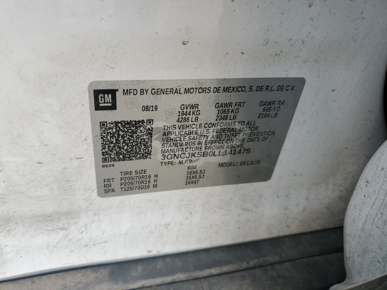 • VIN: 3GNCJKSB0LL141475