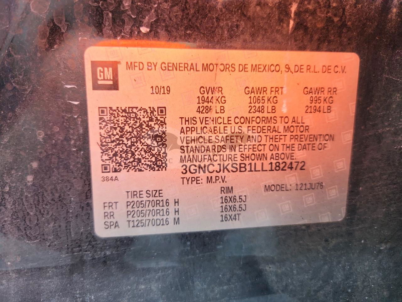 • VIN: 3GNCJKSB1LL182472