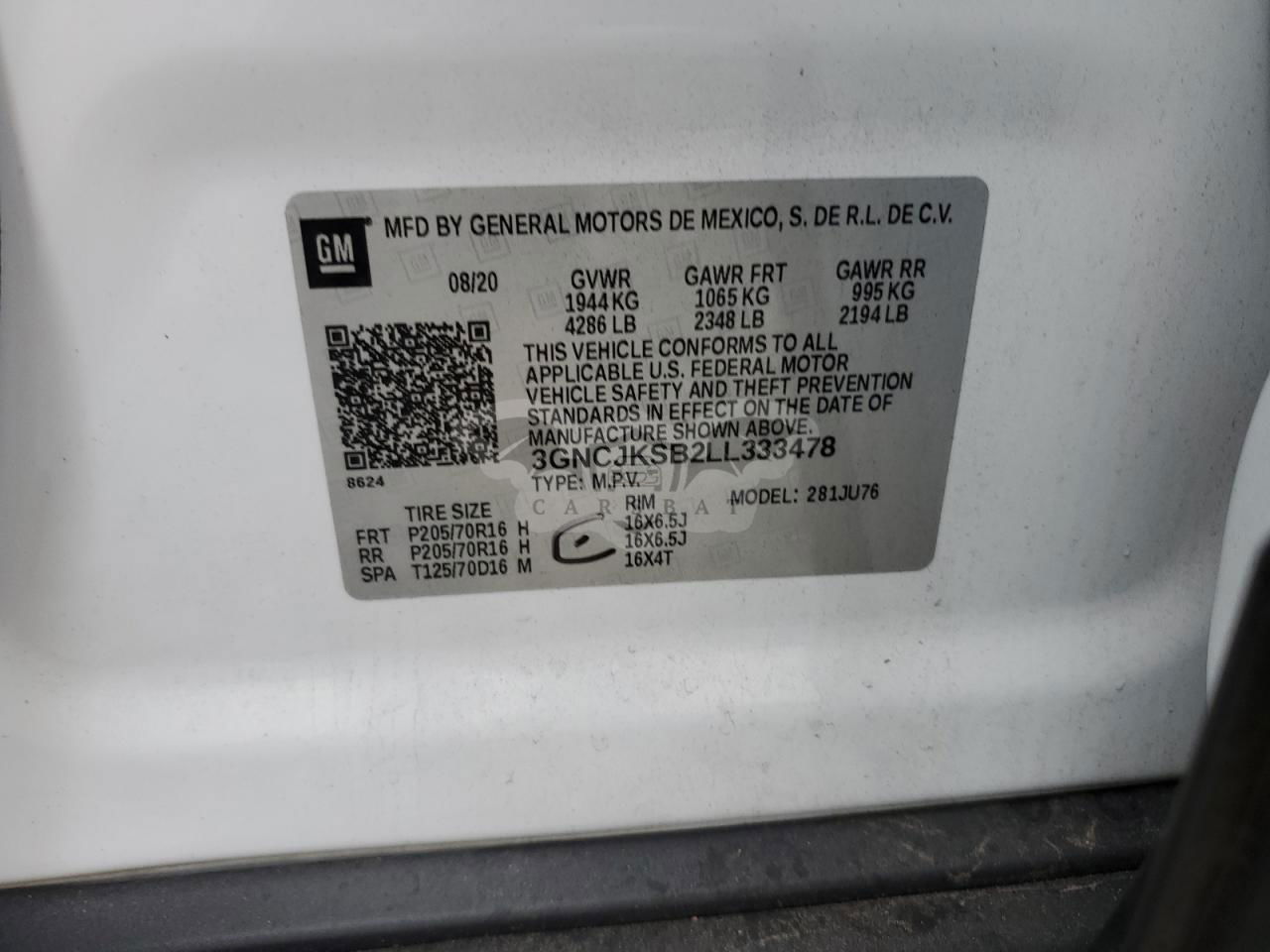• VIN: 3GNCJKSB2LL333478