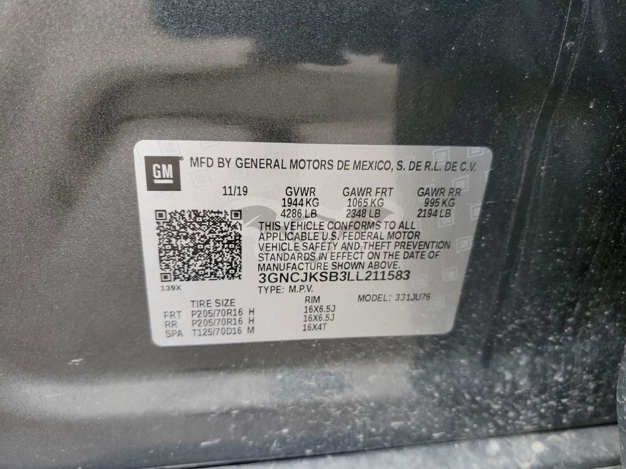 • VIN: 3GNCJKSB3LL211583